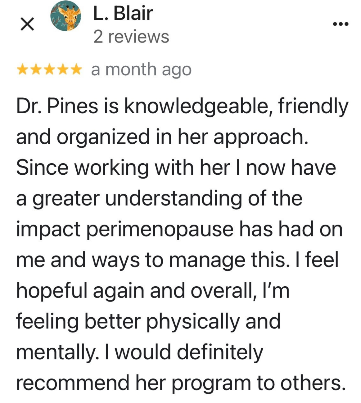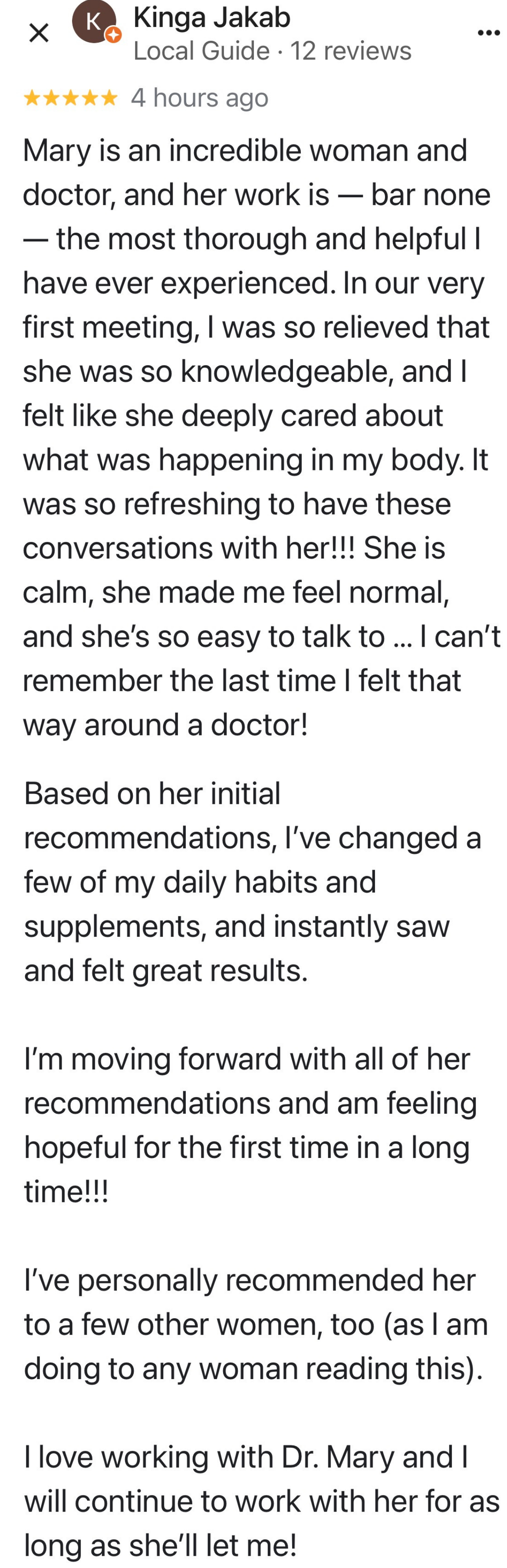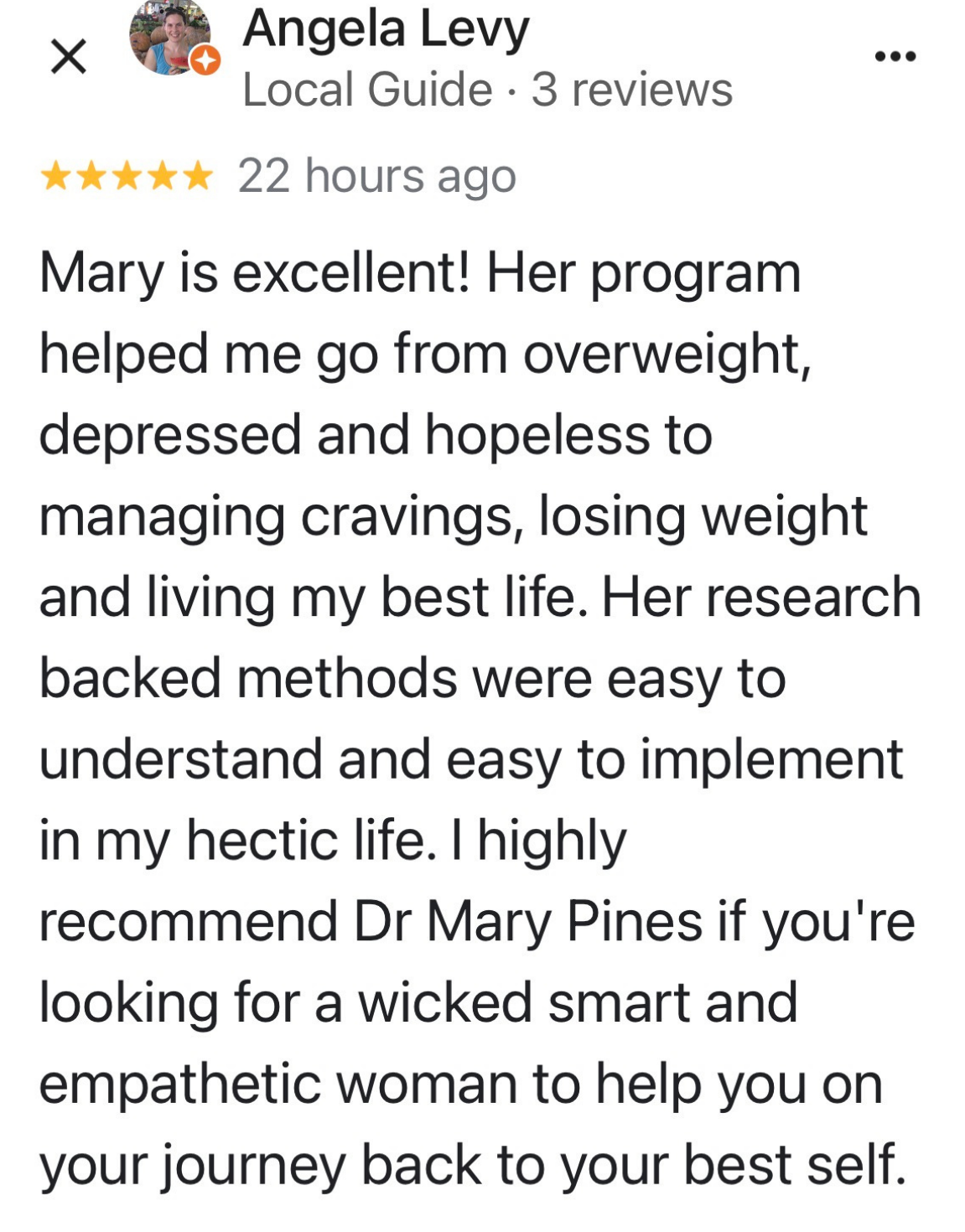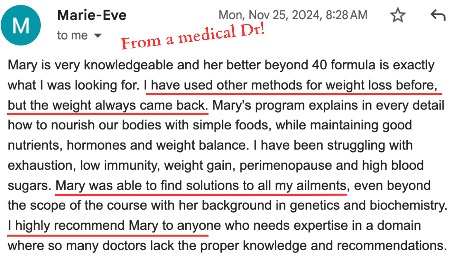 It’s just the whole picture - mindset to diet, to exercise, to hormonal balance, and then also the support, just the camaraderie of other women in the program. As I become more balanced and knowledgeable and progress along through the course with other women, it’s super helpful because we all share a common thing…