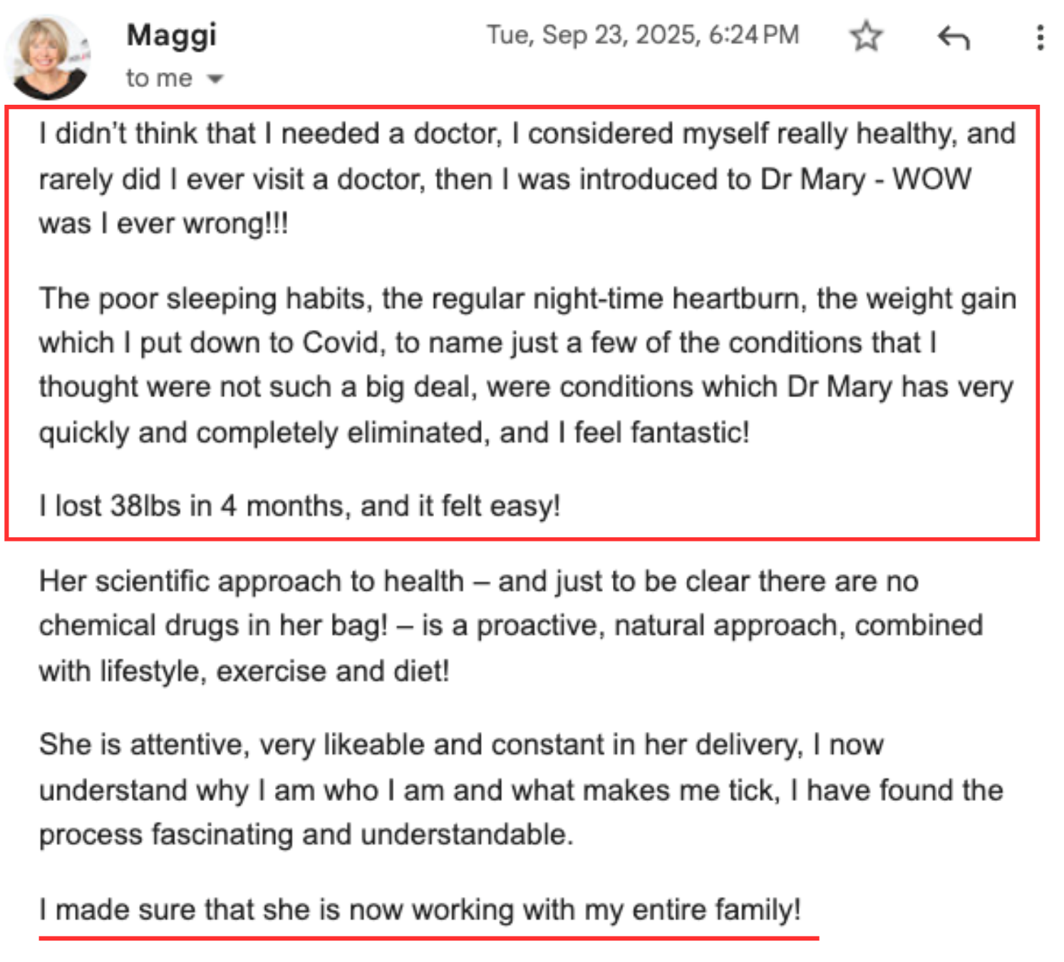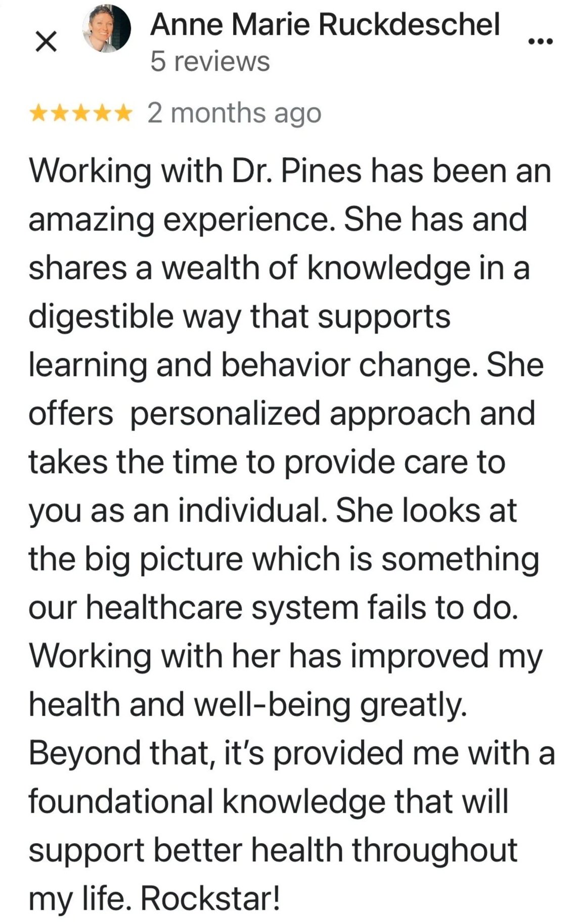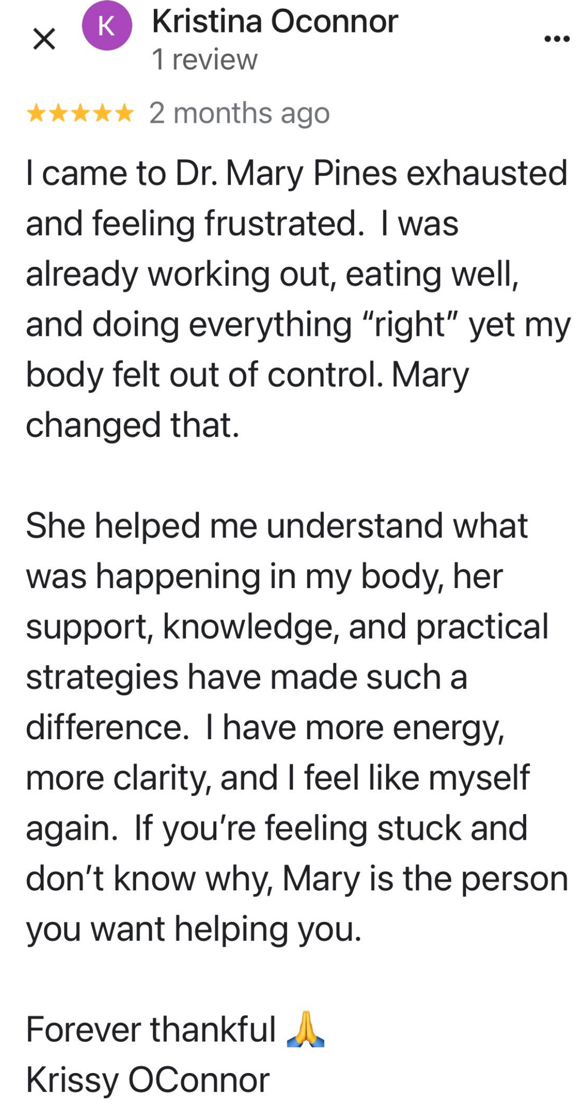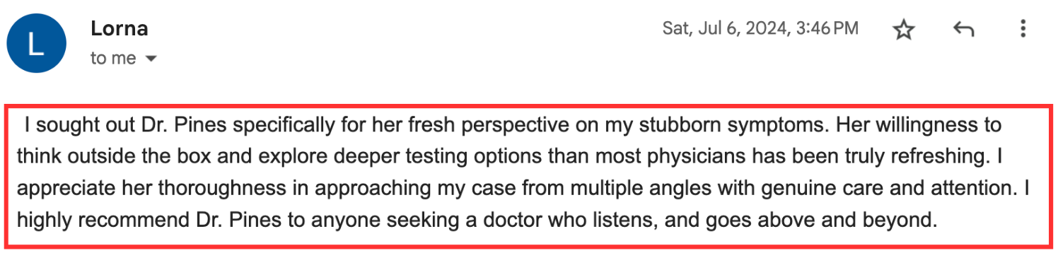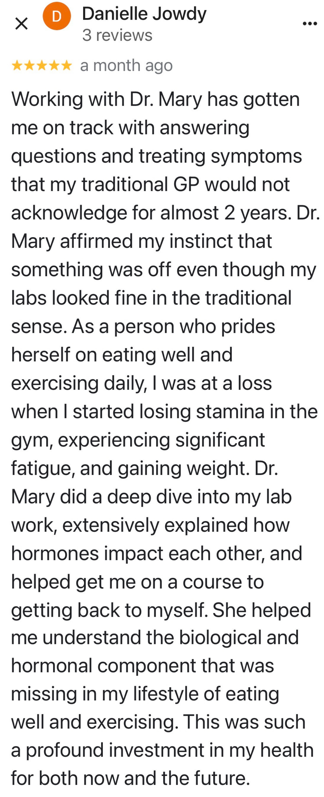 “I've got more energy. I'm less crabby. I'm sleeping better. I'm starting to lose weight. My skin is better. My PMS has gone, my anxiety has gone from an 8 to a 2. I'm finding joy in my life and I've really been able to fine tune my eating habits and just not even like diet or restriction…My inflammation has gone down from 13 to 2, so I'm not sore anymore.
