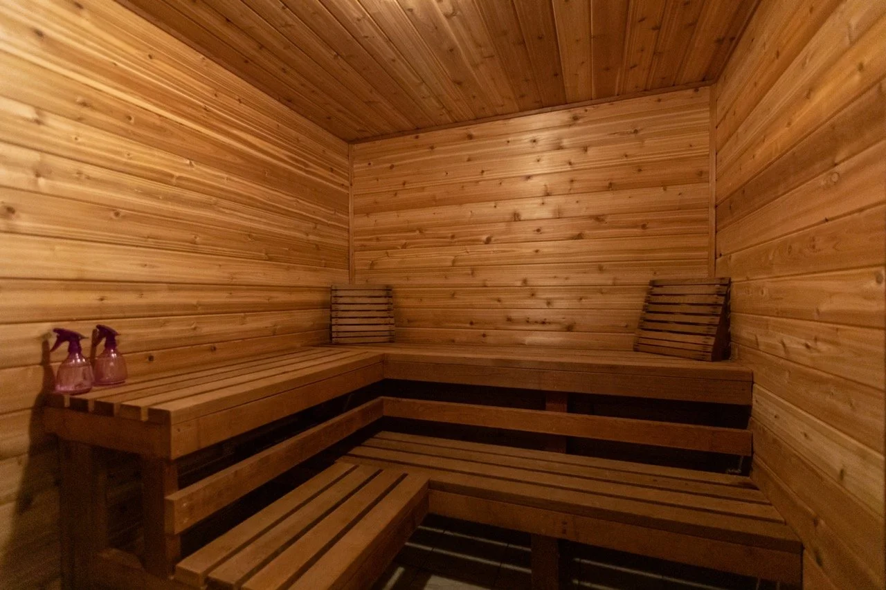 Indoor spa: aromatherapy steam room, wet/dry cedar sauna, rainshower, aromatherapy steam room,