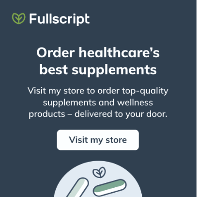*Why Fullscript? They’re sticklers for quality and carry a huge array of high-quality products at competitive prices. It’s also super easy to use: select what you want, check out and your order appears at your mailbox 3-5 days later. You can re-order anytime and at your convenience by revisiting your portal. Only available in USA and Canada.